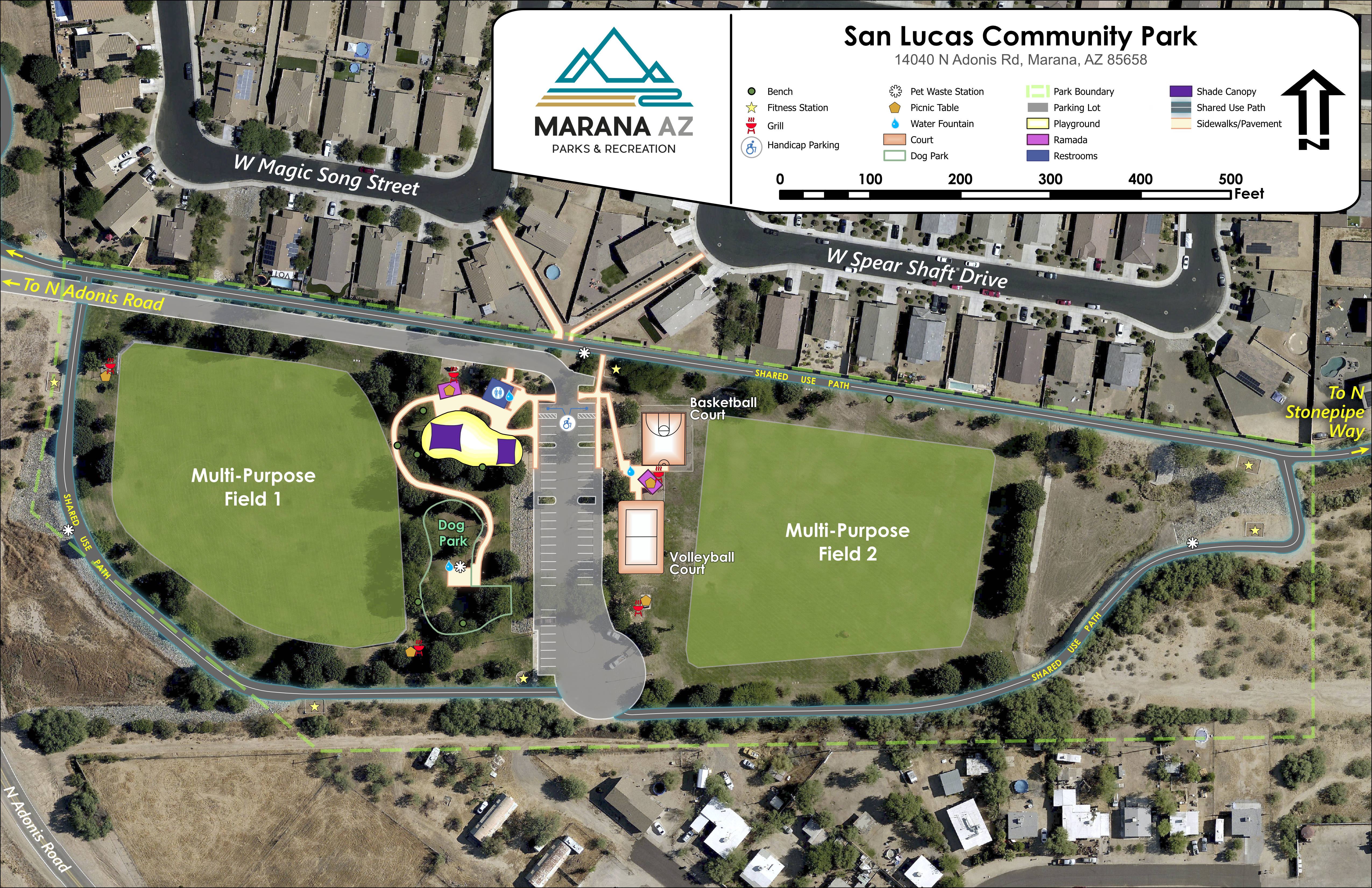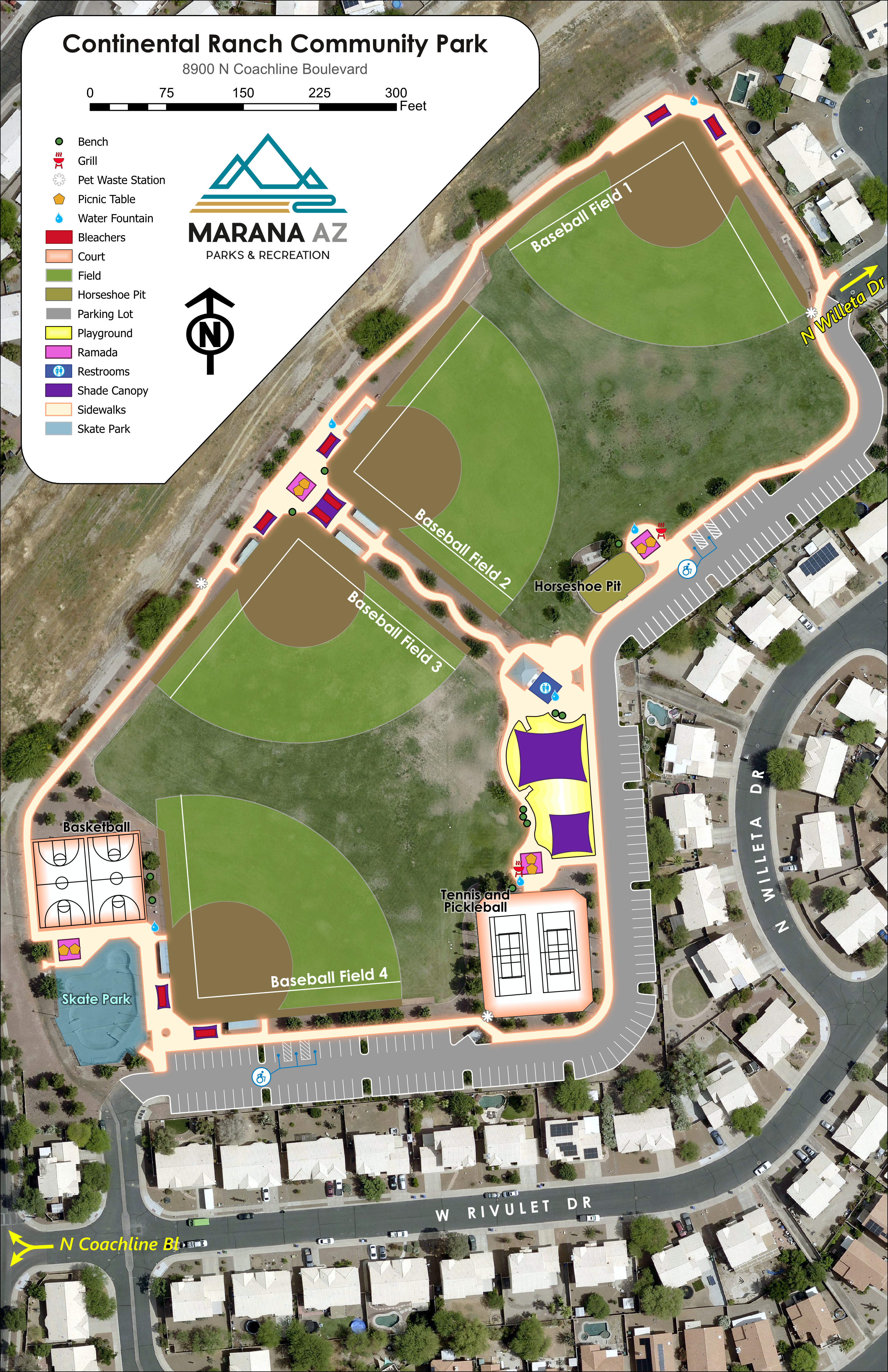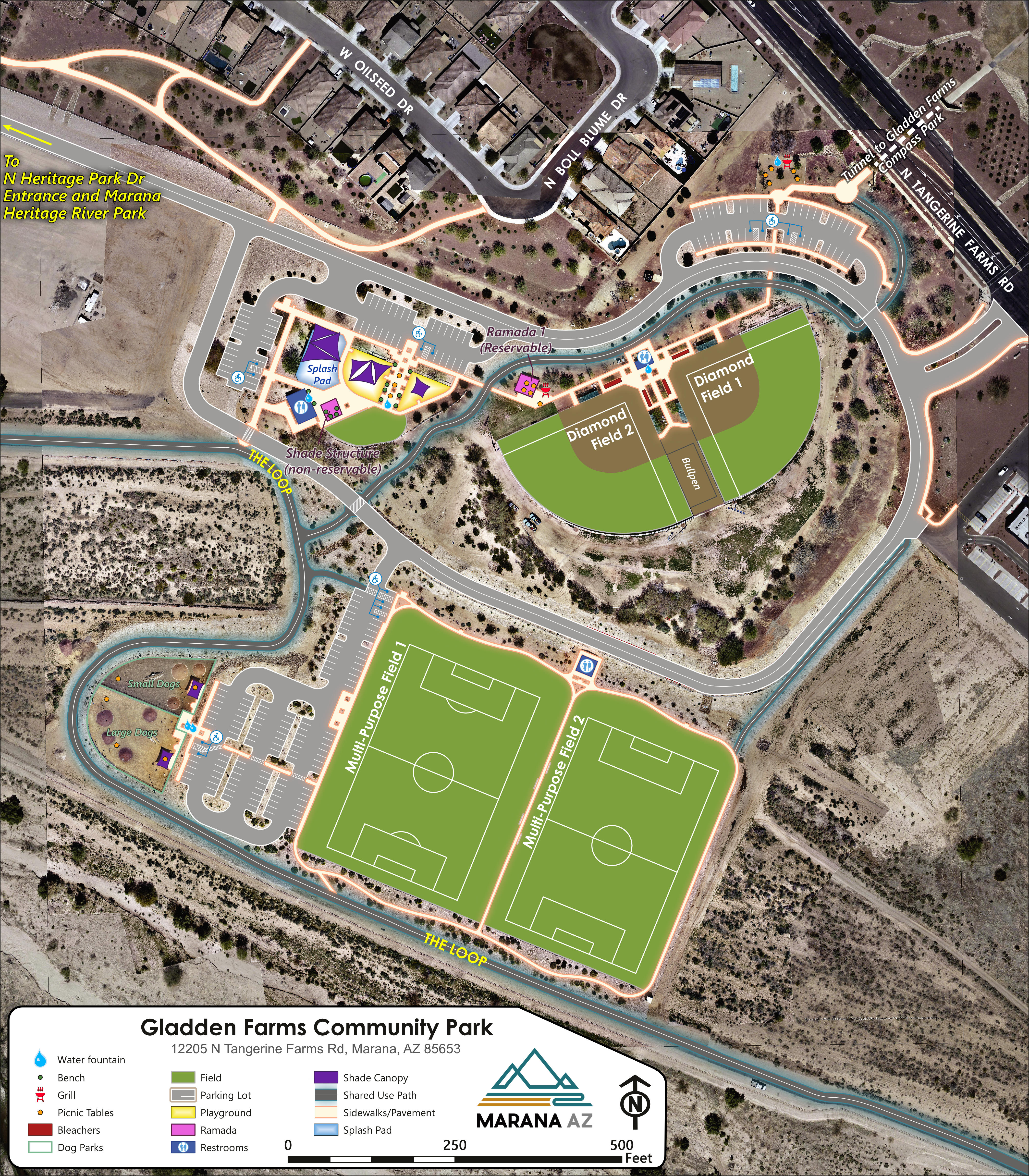 I created maps of all Town of Marana parks. This required visits to parks where I compared old data to existing features. It was an excuse to bring park data up to date. Because Marana is growing rapidly, some park developments outpaced our imagery. Therefore, in the Gladden Farms Community Park, we flew a UAV (drone) to collect up to date imagery, then stitched it together with existing imagery.